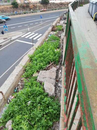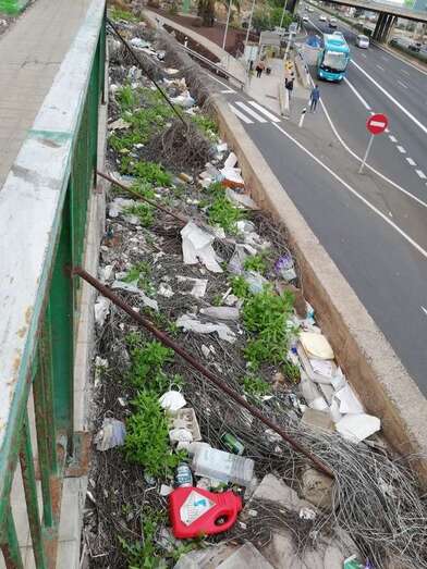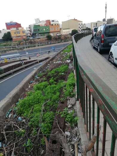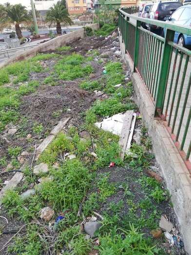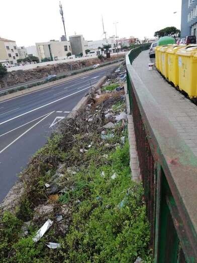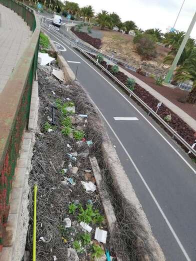 La suciedad se acumula en el Cruce de Melenara en los parterres que están enclavados entre la calle Atindana y el enlace con la autovía GC-1, en dirección sur, desde la rotonda de El Calero Bajo.