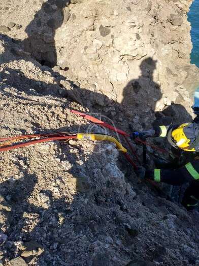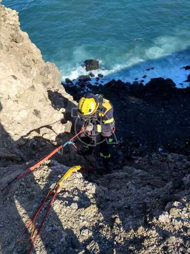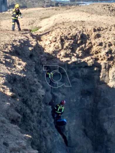 Bomberos del parque zonal de Telde rescataron este lunes por la tarde a una gata que se hallaba en peligro en el acantilado de Malpaso, situado al sur de la desembocadura del Barranco Real. TA ofrece reportaje del rescate.