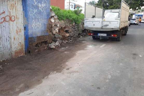 Una papelera lleva tirada sobre la acera desde el pasado lunes en la calle de Alcalde Manuel Amador Rodríguez, en el sector urbano de Arnao. El Servicio Municipal de Limpieza aún está pasando incidencia del hecho, pese a ser una zona de mucho tránsito peatonal.