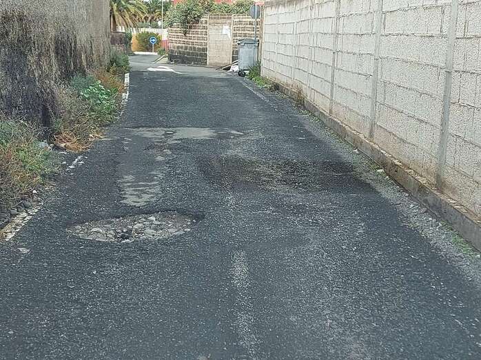 Imagen de uno de los baches presentes en la calle de la Cruz (Foto TA) Imagen de uno de los baches presentes en la calle de la Cruz (Foto TA)