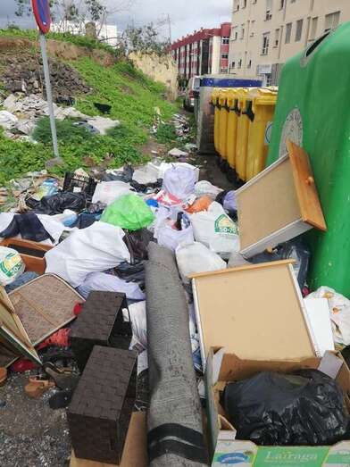 Vecinos del sector de Picachos denuncian la proliferación de residuos junto a los contenedores de basura de la calle Ocho de Marzo, convirtiendo este punto en una auténtico basurero urbano.