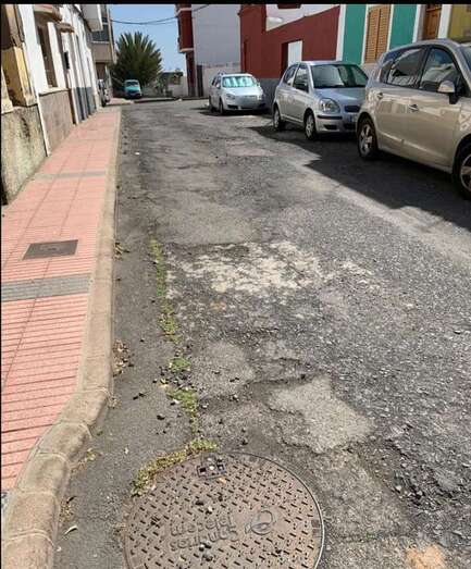 La calle que perpetúa el nombre del conquistador Cristóbal García del Castillo en El Ejido de Telde es un mosaico de baches y socavones que los vehículos que transitan a diario por ella no pueden sortear porque sus dimensiones lo hacen casi imposible.