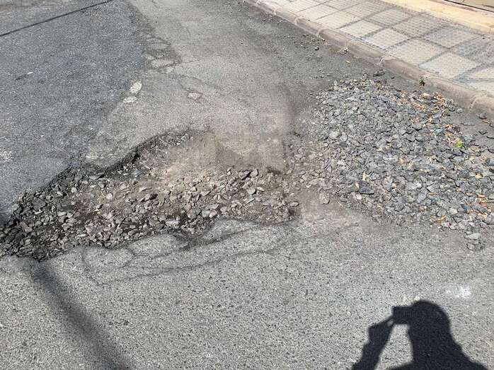 Uno de los baches de la calle Cristóbal García del Castillo en El Ejido/TA. Uno de los baches de la calle Cristóbal García del Castillo en El Ejido/TA.