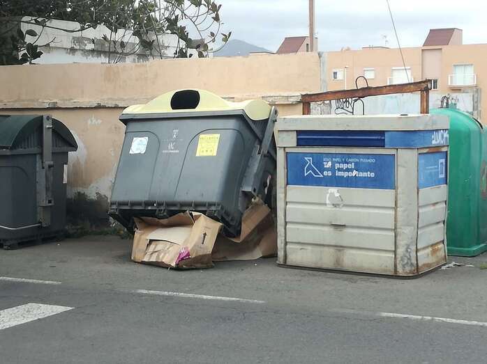 Vecinos de La Pardilla denuncian el estado en el que ha amanecido un contenedor amarillo para plásticos y envases en la calle Raimundo Lulio. Sospechan que los operarios, cuando lo izaron para vaciar su contenido en el camión, no se fijaron bien y al bajarlo los depositarin sobre unos cartones.