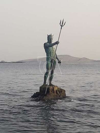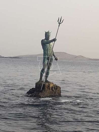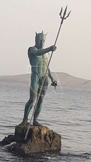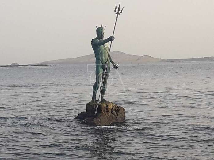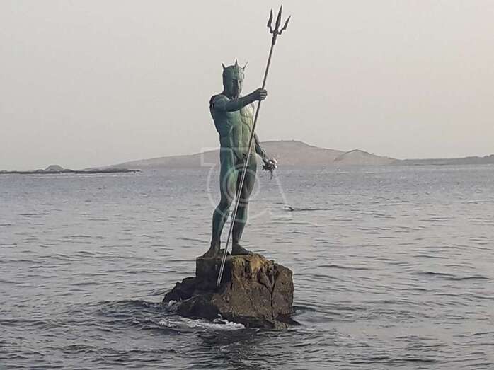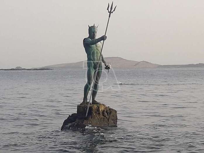 La célebre escultura Neptuno ha querido rendir tributo a su padre, Luis Arencibia Betancor, quien falleció este lunes en Madrid a la edad de 75 años. La monumental obra de bronce que se alza sobre el Puntón de Melenara porta este miércoles un ramo de flores en una de sus manos en recuerdo del artista.
