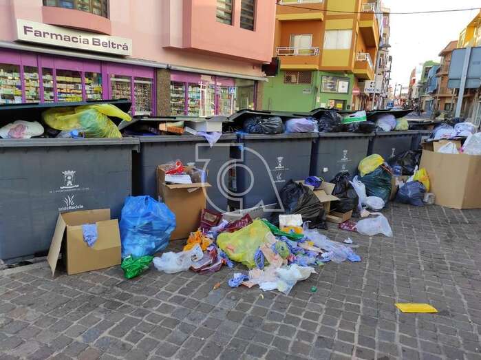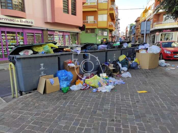 La basura rebosa en una calle del casco urbano de Telde