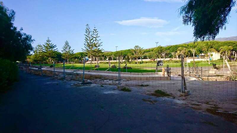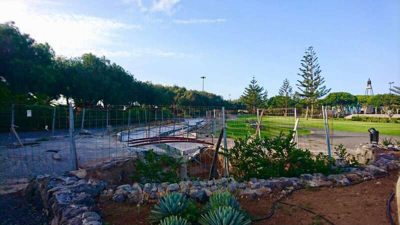 La Concejalía de Parques y Jardines de Telde ha repuesto el vallado que delimita la zona del riachuelo del parque urbano de San Juan. Un tramo acotado por obras y que el viento había derribado, según ha explicado el concejal Álvaro Monzón.
