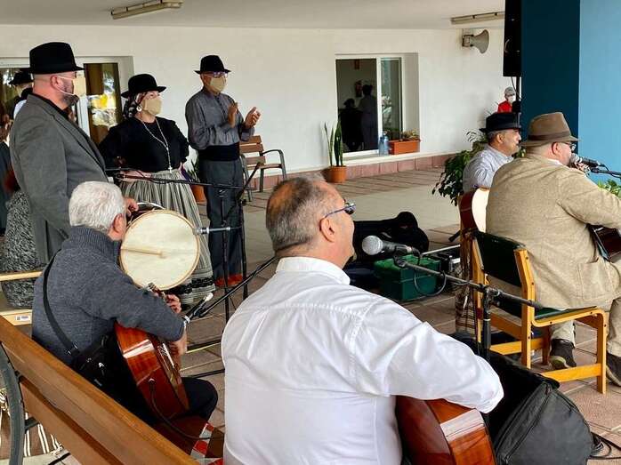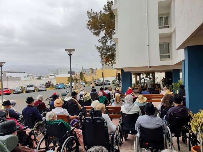 Un grupo de monitores de la Escuela Municipal de Folklore de Telde acudió este martes hasta la Residencia de Mayores de Taliarte para ofrecer un concierto a los usuarios de este centro socio-sanitario. Una actividad que forma parte del programa de actos que la Concejalía de Cultura ha elaborado para festejar el Día de Canarias.