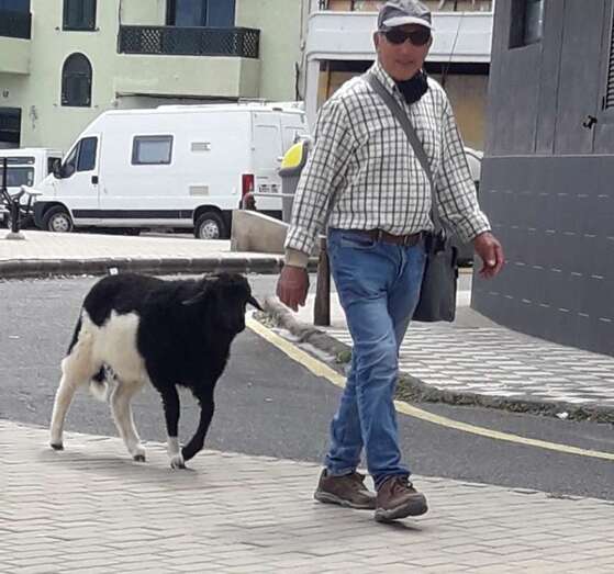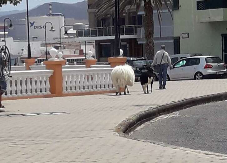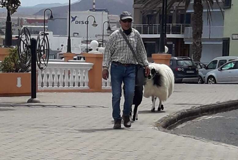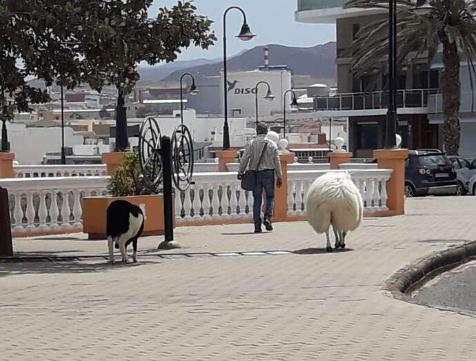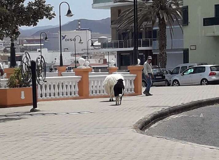 Esta semana se vio una imagen poco habitual en la costa de Telde: el transitar de una oveja y un carnero con su propietario por el paseo marítimo entre Melenara y Salinetas por Clavellinas.