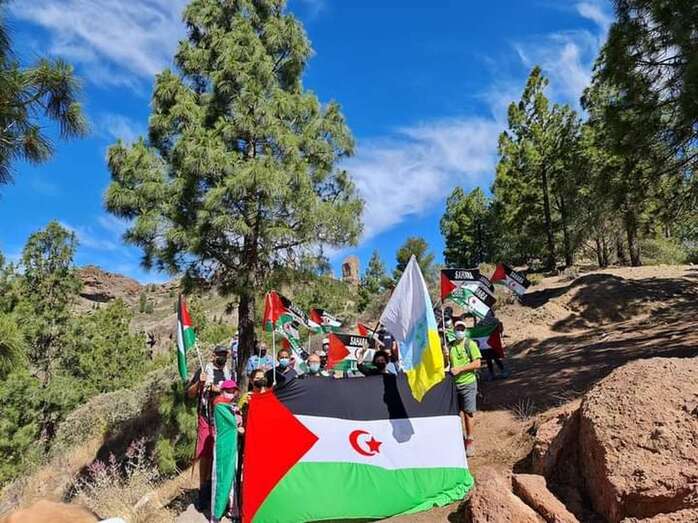 Un grupo de ciudadanos de Telde y de otros municipios grancanarios realizó este sábado una subida al Roque Nublo como acto previo a la gran Marcha por la Libertad del Pueblo Saharaui que tendrá lugar el sábado 19 de junio en la capital grancanaria, a partir de las 10.00 horas, desde la Plaza Saulo Torón (Paseo de Las Canteras) hasta la Plaza La Feria.
