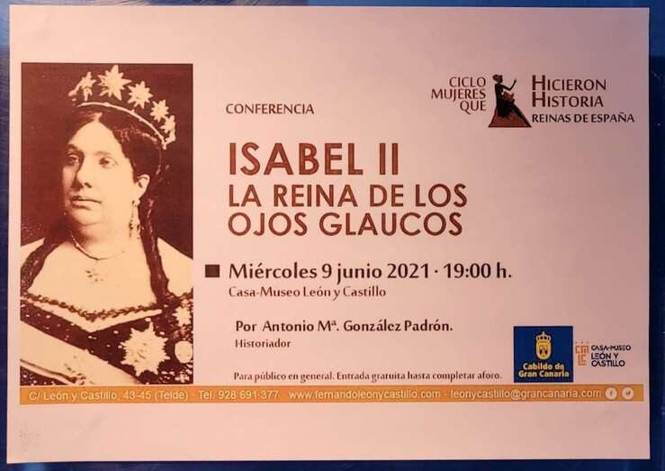 El cronista oficial de Telde, Antonio María González Padrón, conferenció este miércoles en la Casa-Museo León y Castillo sobre Isabel II, la reina de los ojos glaucos, en el marco del ciclo Mujeres que hicieron historia, Reinas de España, tal y como informó este diario digital.