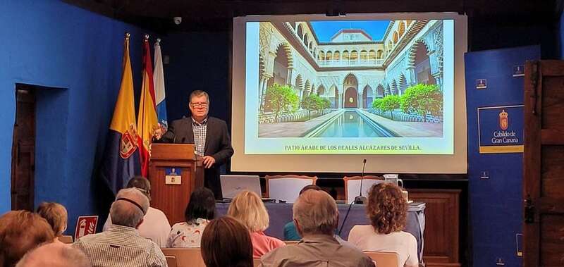 Momento de la conferencia de anoche del cronista en la Casa-Museo León y Castillo/Jesús Ruiz Mesa.
