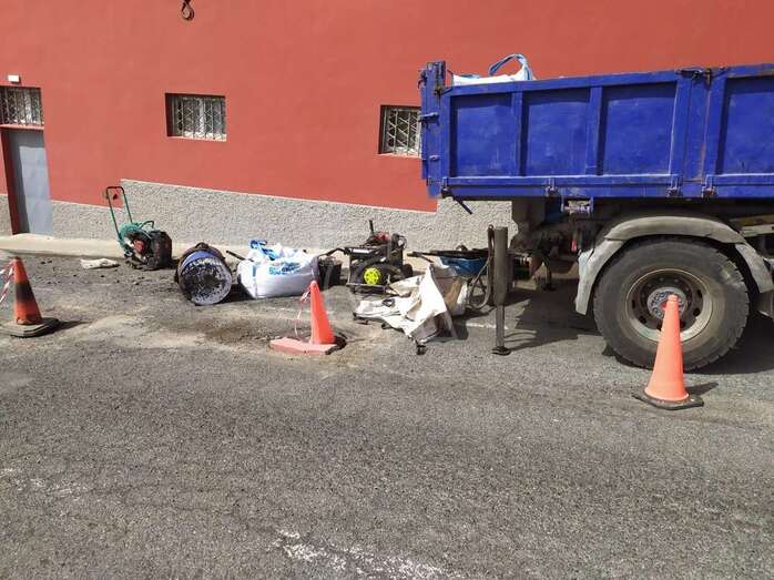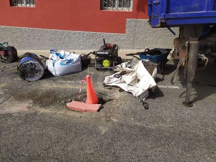 La Concejalía de Vías y Obras, que tutela el edil Eloy Santana, desplazó esta mañana a Caserones Altos a operarios del servicio de mantenimiento de carreteras, adjudicado por Fomentas a una UTE, para que arreglase los profundos socavones de la calle de Miño que el colectivo vecinal había advertido a los conductores mediante la colocación de conos de seguridad, tal y como se hizo eco TELDEACTUALIDAD.