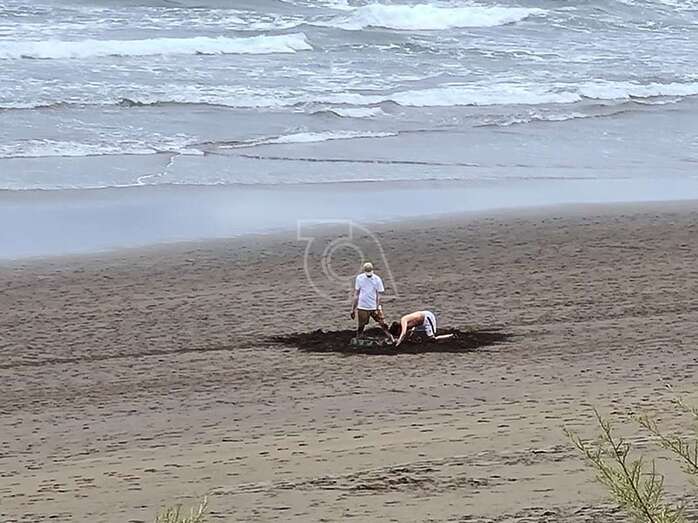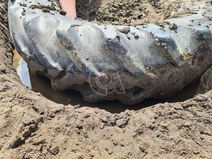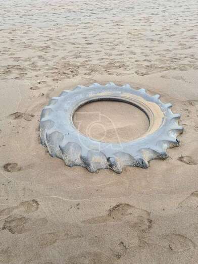 La gran goma neumática que el mar arrojó a la orilla en Playa del Hombre/TA. La gran goma neumática que el mar arrojó a la orilla en Playa del Hombre/TA.