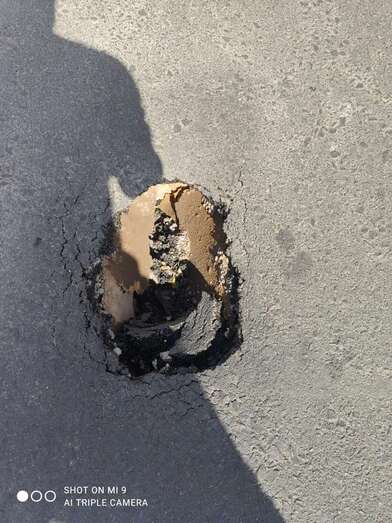 Aparece un agujero en el nuevo asfaltado de una calle de Jinámar