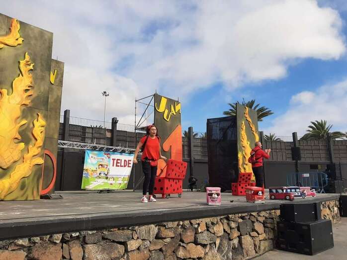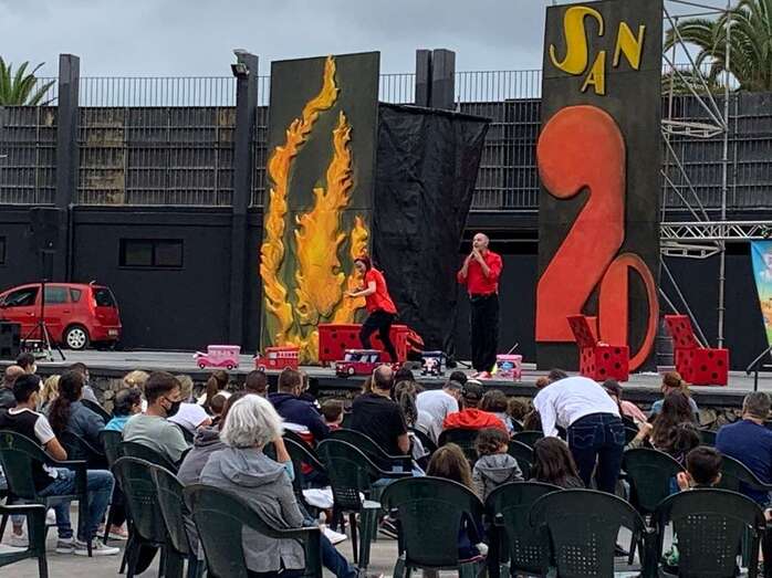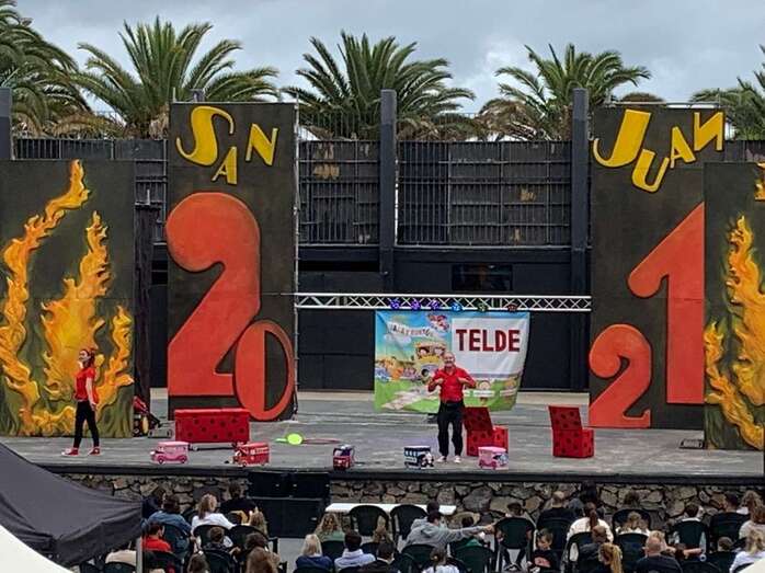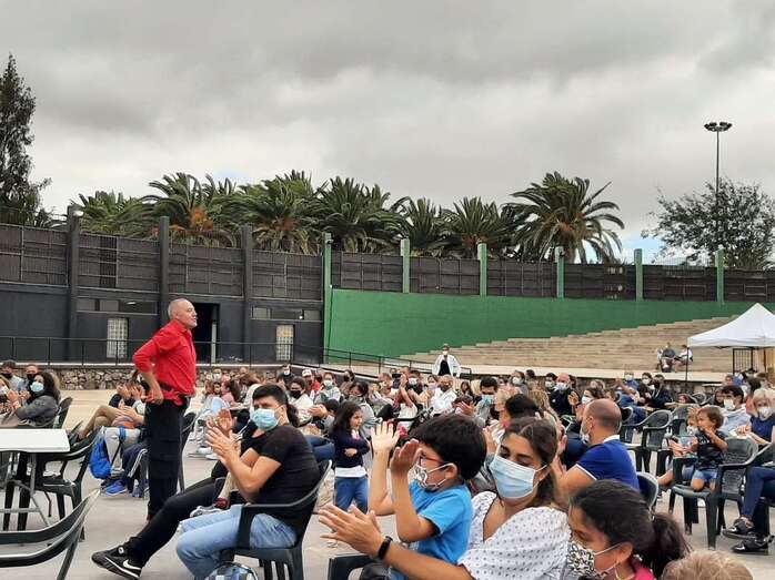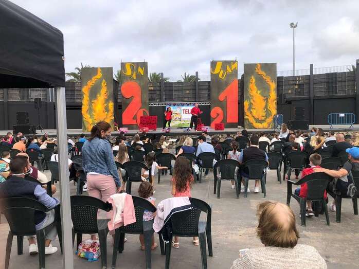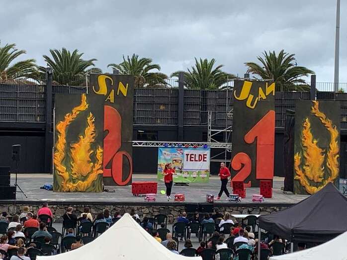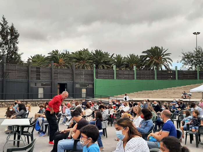 Personas de todas las edades disfrutaron esta tarde, a partir de las 18.00 horas, del espectáculo musical Coco Uaua, con Sara y Tontón, de la productora Corazón Azul, que tuvo lugar en el anfiteatro del parque urbano de San Juan, acto encuadrado en el programa de las fiestas patronales de San Juan de Telde.