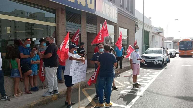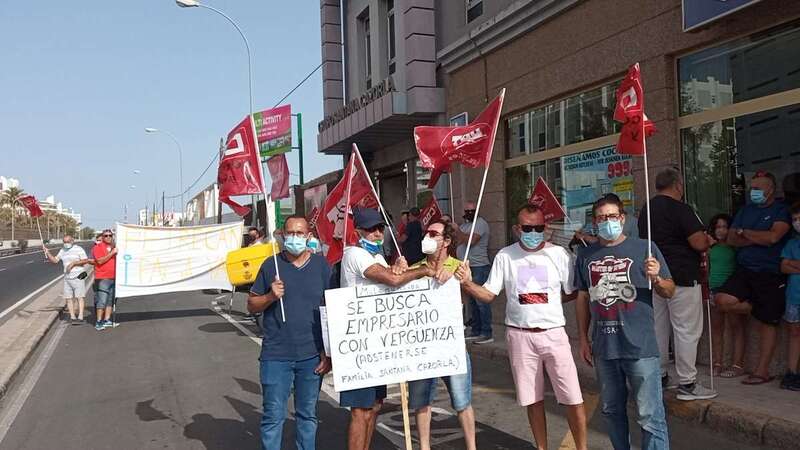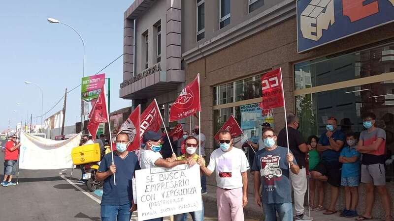 Por tercera semana consecutiva, los trabajadores de Petrecan, la empresa que entre otras obras ejecuta la ampliación de la carretera de Melenara, en Telde, se han vuelto a concentrar con pancartas y carteles a las puertas de la sede de la compañía del grupo Hermanos Santana Cazorla, en Maspalomas, para exigir el pago de sus salarios.