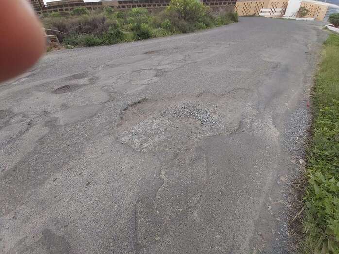 Los vecinos de Las Huesas, Cruz de Jerez, Lomo Espino y Las Tabaibas también protestan por el "lamentable estado de abandono" en el que se encuentra la red viaria que conecta estos barrios, con innumerables baches, tal y como denuncia Sergio León Sánchez.