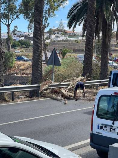 Caída de hojas de palmera sobre la carretera de Jinámar (Telde)