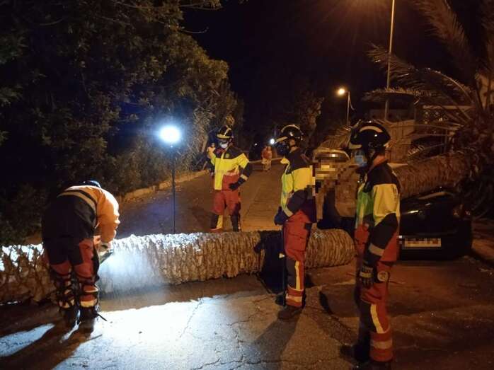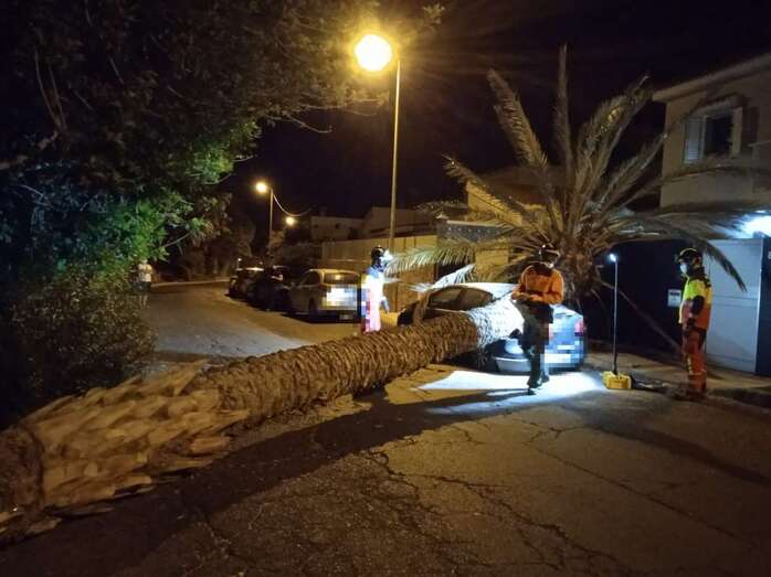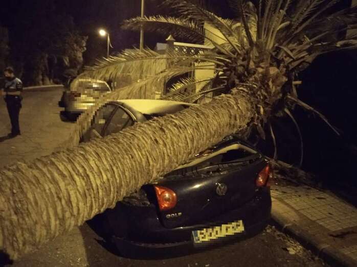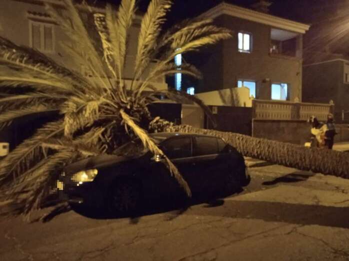 Una palmera se desplomó esta madrugada en Marzagán sobre un vehículo estacionado en la vía pública al que ocasionó daños de consideración. Intervinieron efectivos de los bomberos y Policía Local de la capital grancanaria. No hubo que lamentar perjuicios personales.