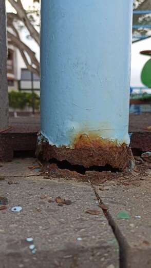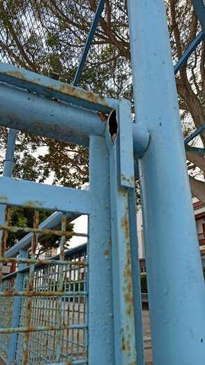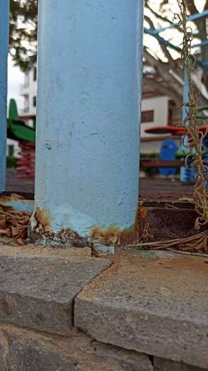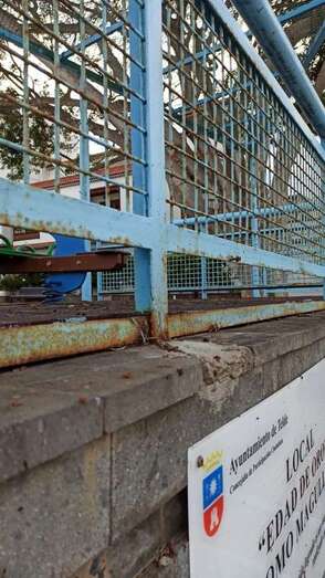 Los vecinos de Lomo Magullo protestan por el mal estado que presenta el parque infantil ubicado en la Plaza de Las Nieves. Los elementos y estructuras metálicas están oxidadas, algunas incluso corren riesgo de desprenderse y caer, lo que supone todo un peligro. Además del suelo, la suciedad y, en general, el abandono en el que se encuentra este espacio municipal.