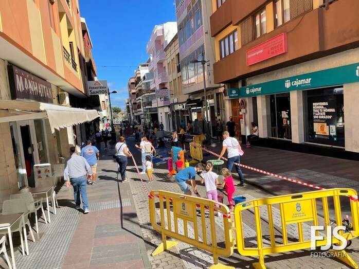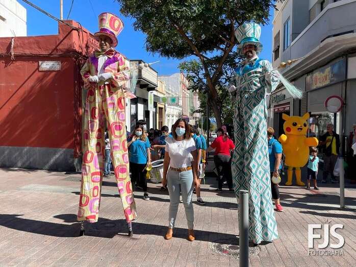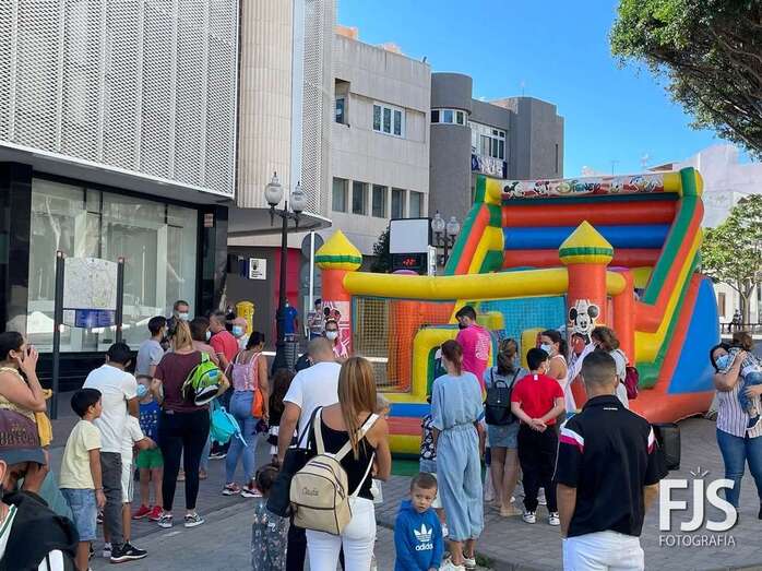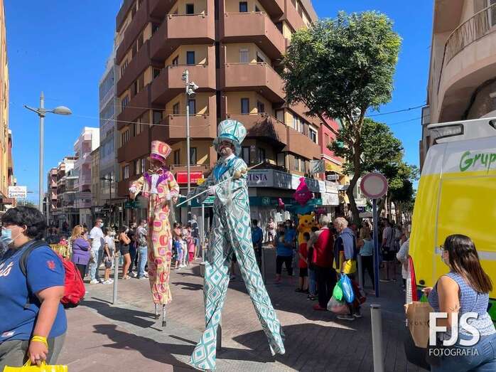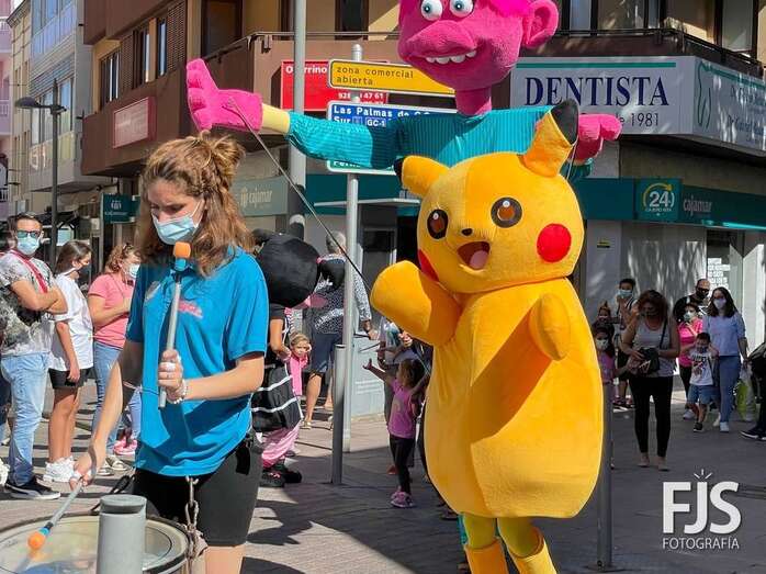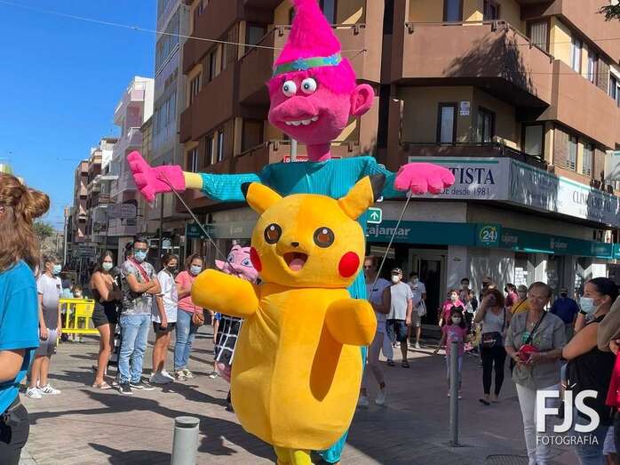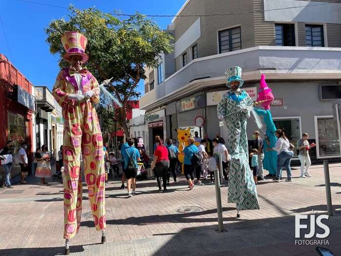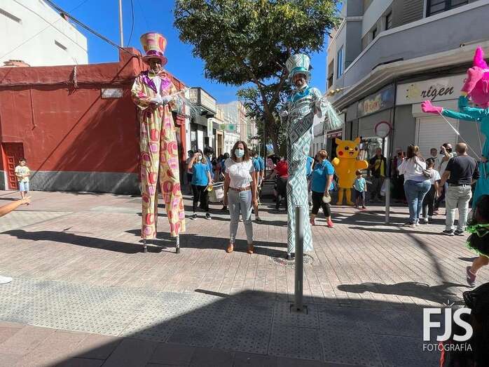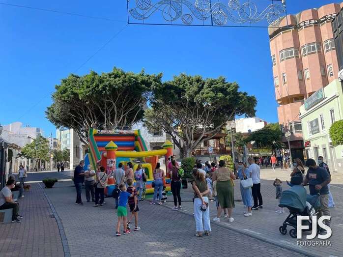 La Zona Comercial Abierta de San Gregorio disfrutó este sábado, de 11.00 a 14.00 horas, de actividades infantiles con motivo del evento Telde cambia la hora. Castillos hinchables, mini-karting, ludoparque, dianas, minigolf y un pasacalles de zancudos a ritmo de una batucada animaron la mañana en las calles principales del barrio de Los Llanos.
