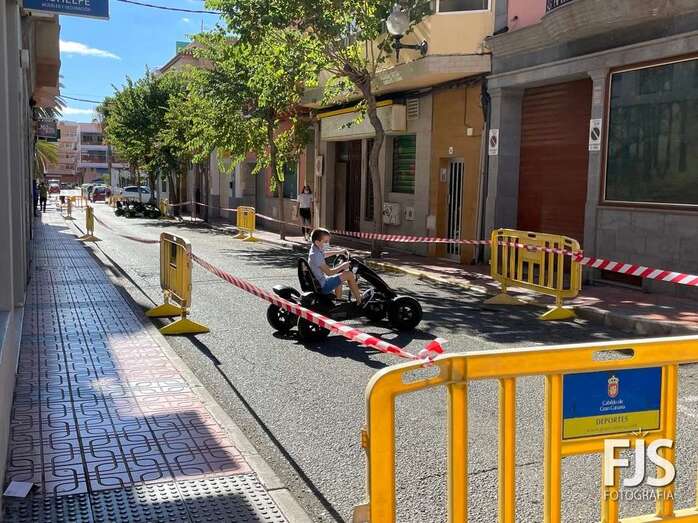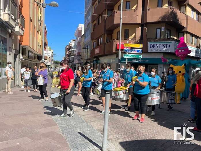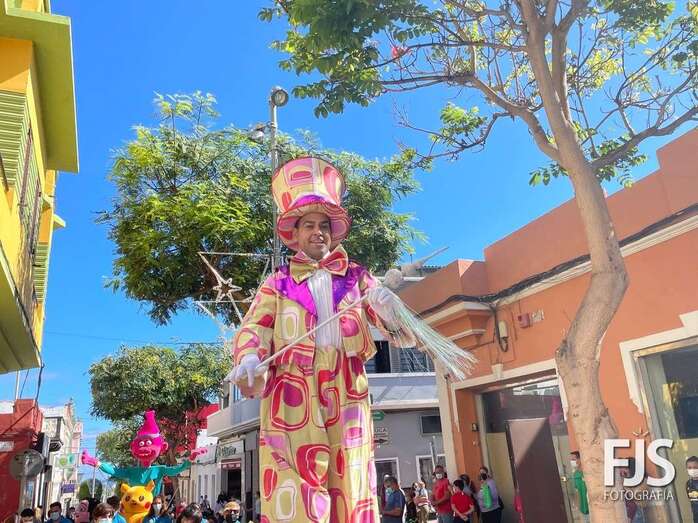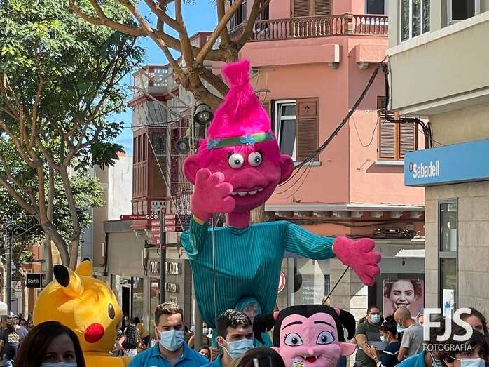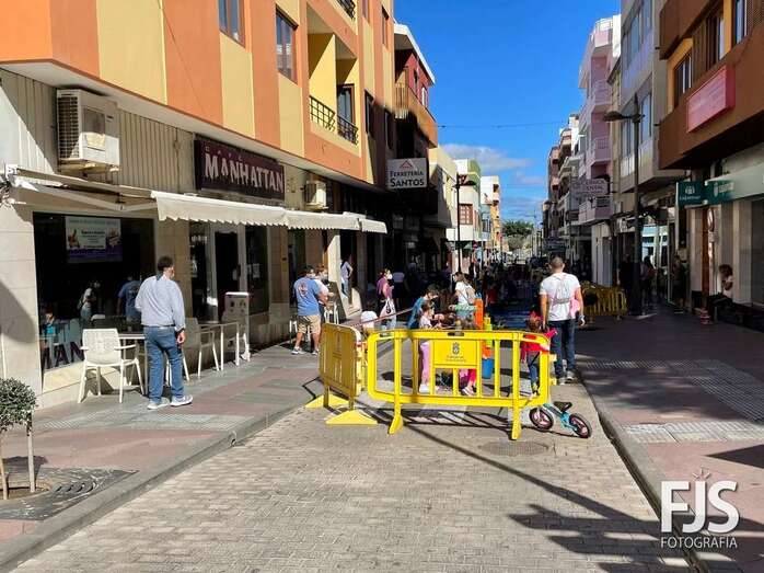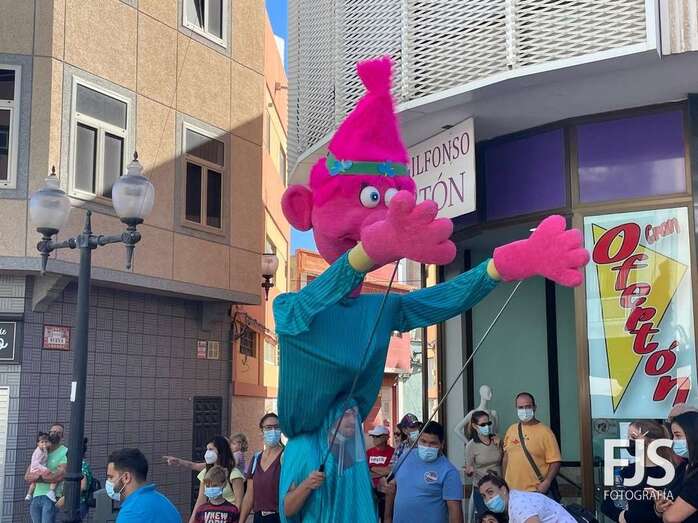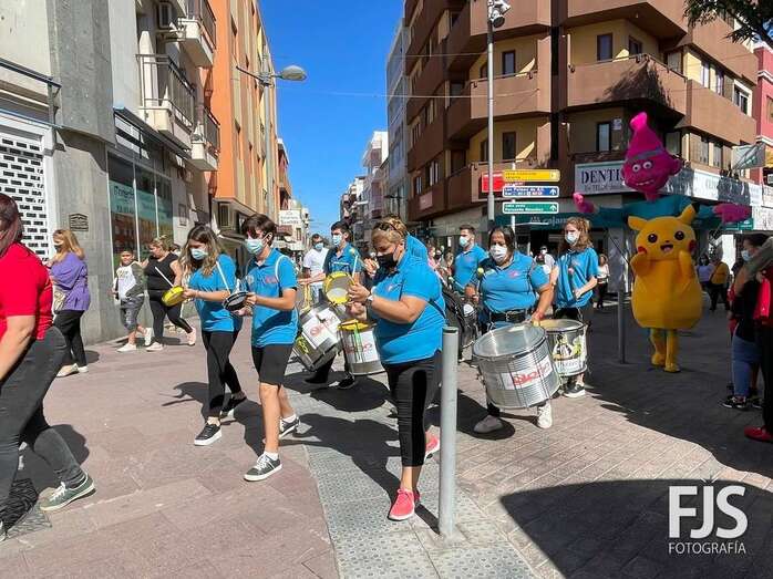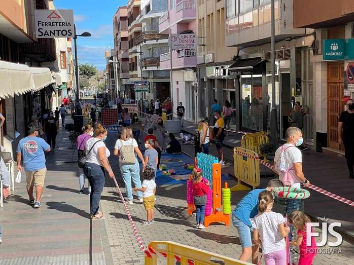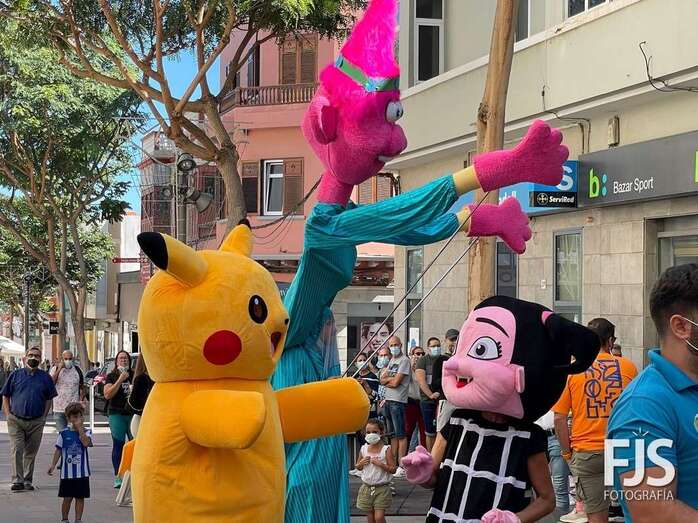 La Zona Comercial Abierta de San Gregorio disfrutó este sábado, de 11.00 a 14.00 horas, de actividades infantiles con motivo del evento Telde cambia la hora. Castillos hinchables, mini-karting, ludoparque, dianas, minigolf y un pasacalles de zancudos a ritmo de una batucada animaron la mañana en las calles principales del barrio de Los Llanos.