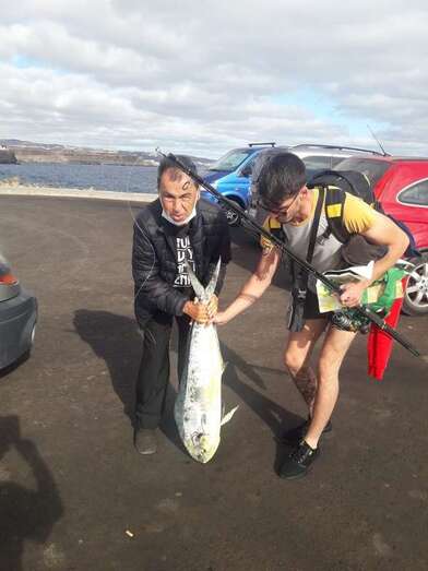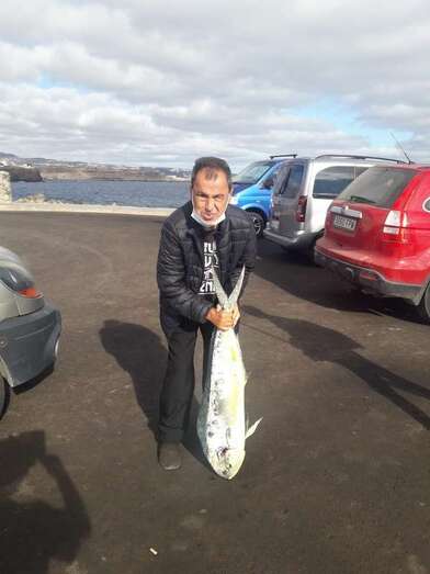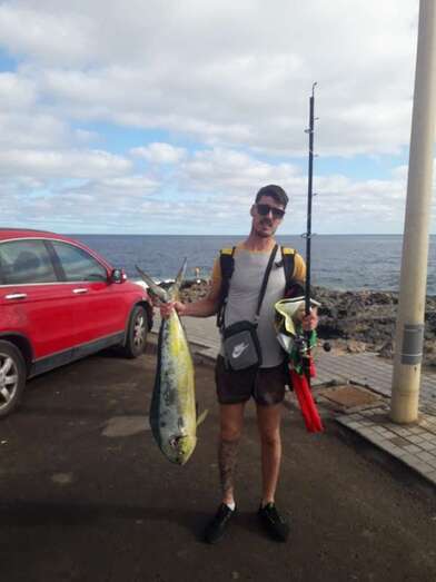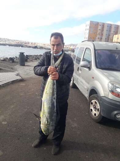Un joven pescador de caña capturó esta mañana un dorado de siete kilos de peso en la Punta de Las Salinas, en la costa de La Garita (Telde).