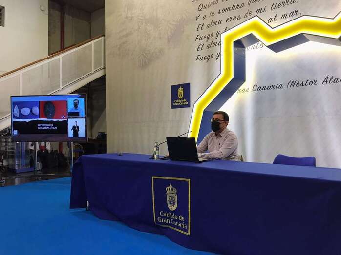 El yacimiento prehispánico de Los Melones, en la coste teldense de La Garita, centró este miércoles la conferencia que impartió en el Patio del Cabildo de Gran Canaria el arqueólogo Abel Galindo con el título El mar de los canarios.