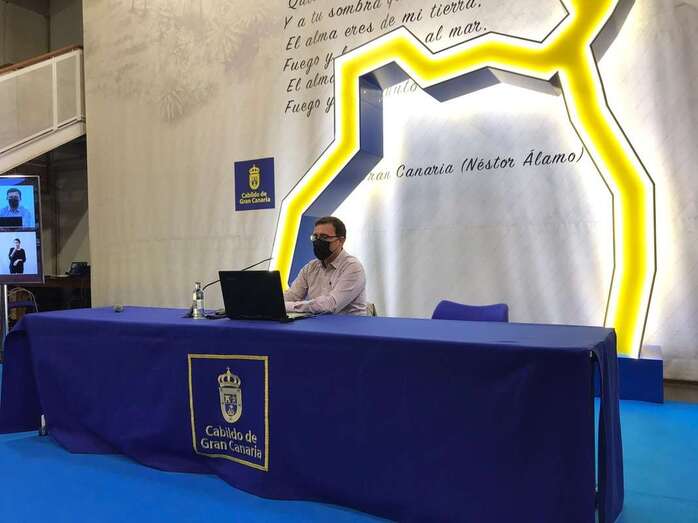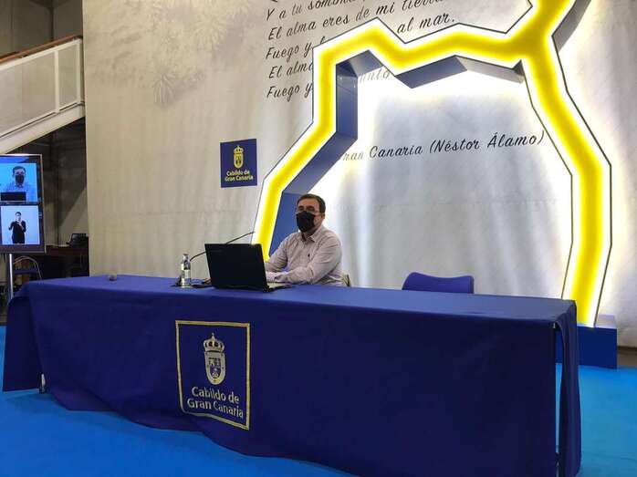 Momento de la charla de Abel Galindo, anoche en el Patio del Cabildo de Gran Canaria/TA.