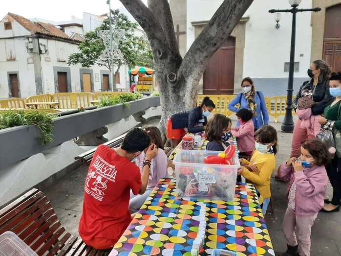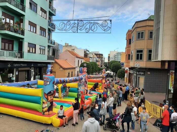 La chiquillería de Telde disfrutó de lo lindo la tarde de este domingo con las actividades programadas por la Concejalía de Festejos en la plaza de Los Llanos con motivo de las fiestas de San Gregorio 2021. Los castillos hinchables y los talleres infantiles hicieron las delicias del público joven.