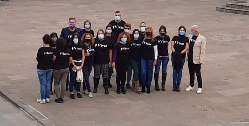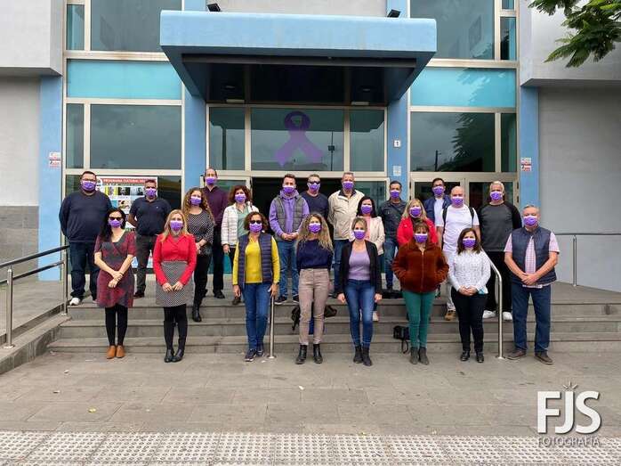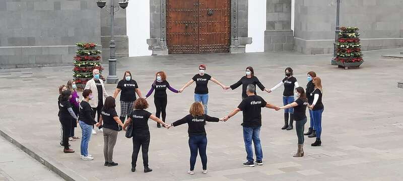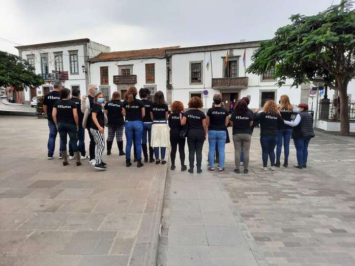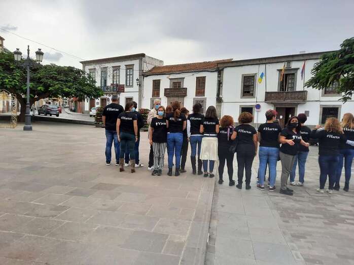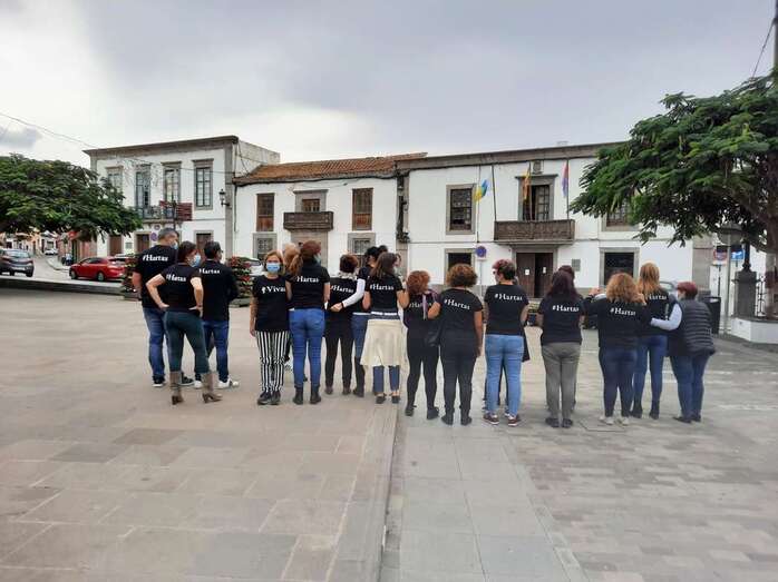 El personal municipal de Servicios Sociales se concentró sobre las 13.15 horas en San Juan para visibilizar su hartazgo por la violencia machista que se ha cobrado en lo que va de año 37 víctimas mortales. Lo hicieron luciendo camisetas negras con el lema etiquetado #Hartas. El concejal del área, Diego Ojeda, se unió a ellos tras finalizar el Pleno. Los trabajadores de Cultura y de Gestel se concentraron también delante del Teatro Municipal.