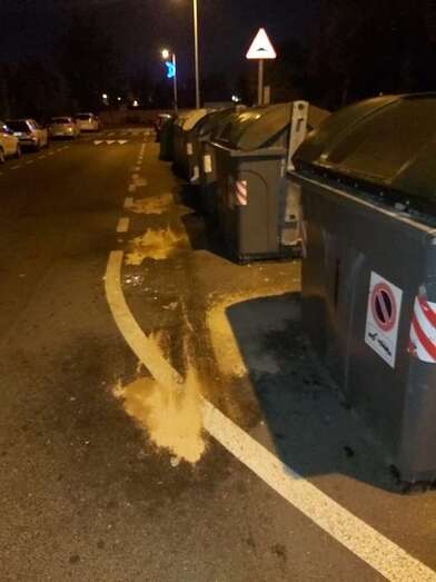 Las Remudas denuncia el derrame de aceite junto a los contenedores de basura