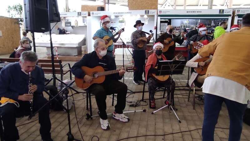 La Escuela Municipal de Folclore de Telde ha deleitado este miércoles, a partir de las 11.00 horas, a los puesteros y clientes del Mercado Municipal con una selección de villancicos navideños, en una actuación organizada por la Concejalía de Cultura y la empresa pública Gestel. TA ofrece reportaje gráfico y video.