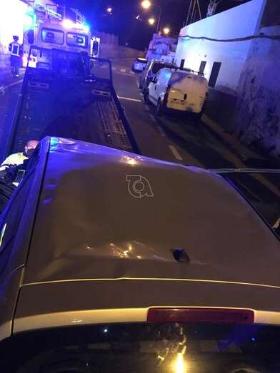 Un vehículo volcó de forma aparatosa en la carretera general del Valle de los Nueve, a la altura del número 44 de la calle Dos de Mayo, en sentido bajada hacia el casco de Telde. Los jóvenes ocupantes resultaron ilesos en el accidente ocurrido a última hora del pasado domingo. La Policía Local instruyó diligencias y también actuaron los bomberos.