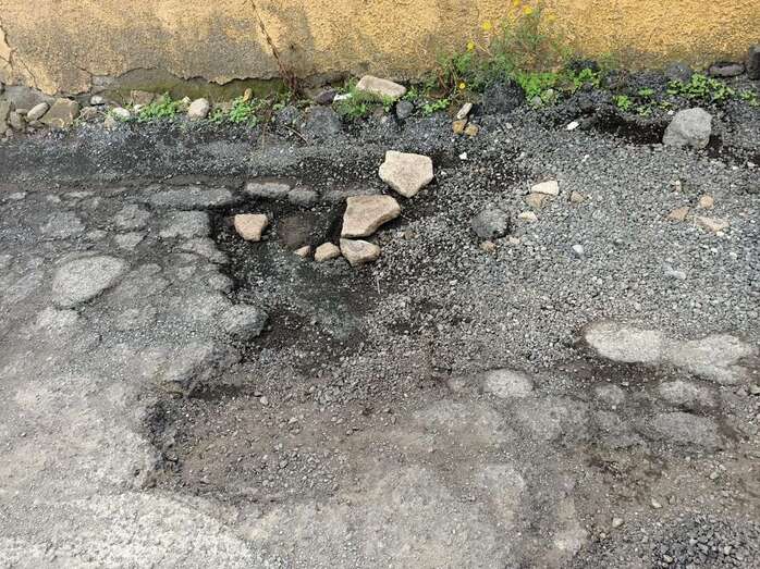 Vecinos del sector alto de Caserones protestan por el estado en el que se encuentra el asfalto de la carretera (Calle Minerva) que comunica este barrio con el de La Higuera Canaria. "Han venido varias veces tapando baches y esta calle es la gran olvidada", manifiesta una residente.