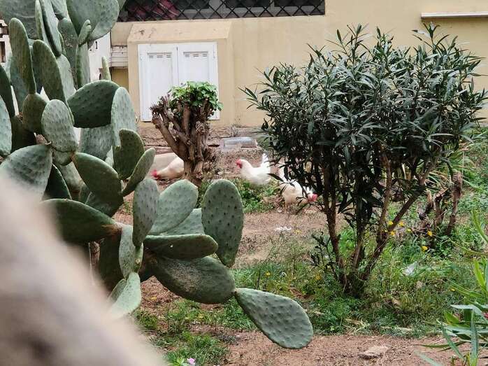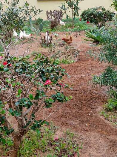 Un grupo de gallinas sorprendió este lunes a los vecinos de Las Remudas. Las aves, alrededor de quince animales, aparecieron en el aparcamiento nº 3 de este enclave poblacional teldense, paseando alegremente por la zona ajardinada.