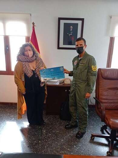La concejala de Cultura del Ayuntamiento de Los Llanos de Aridane, Charo González Palma, visitó estos días la Base Aérea de Gando para recoger un cheque por valor de 4.000 euros recaudados con la venta de calendarios solidarios y que serán destinados a la compra de material educativo para los menores afectados por la erupción volcánica.