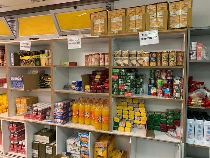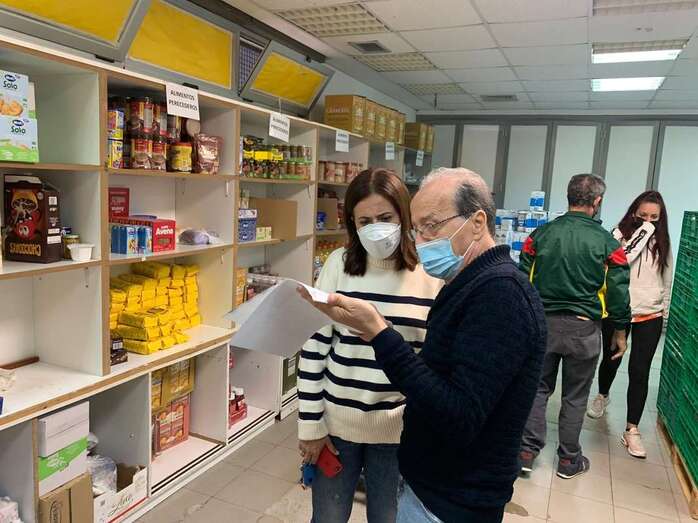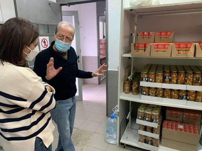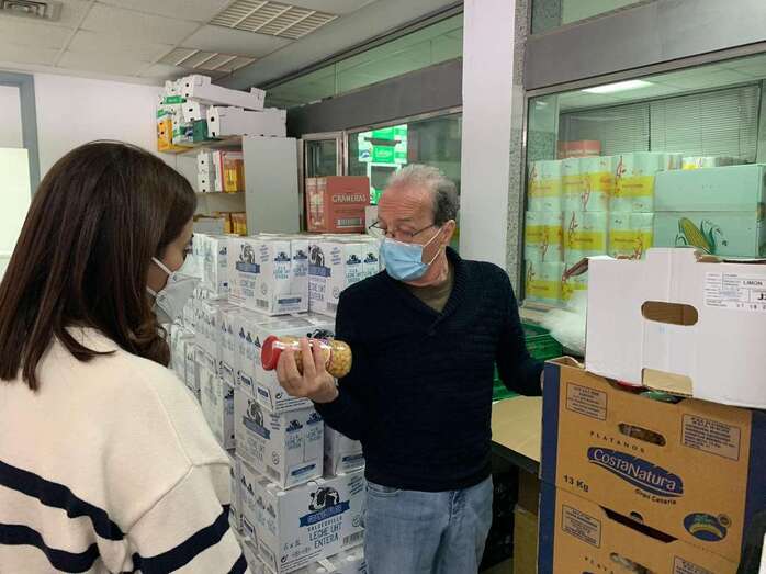 La presidenta del PP, Sonia Cáceres, con un miembro del colectivo en la unidad de reparto de alimentos/TA. La presidenta del PP, Sonia Cáceres, con un miembro del colectivo en la unidad de reparto de alimentos/TA.