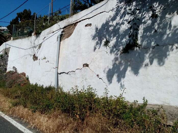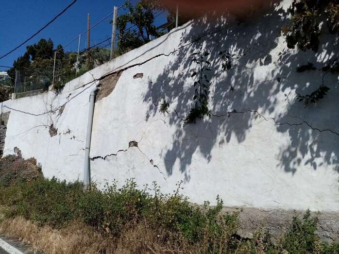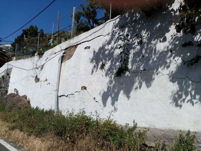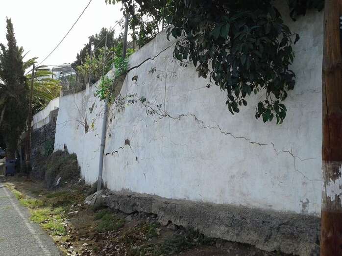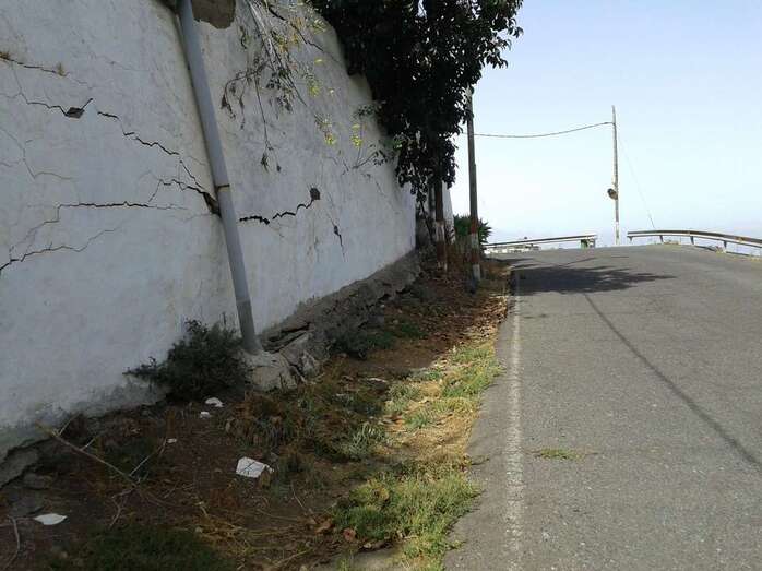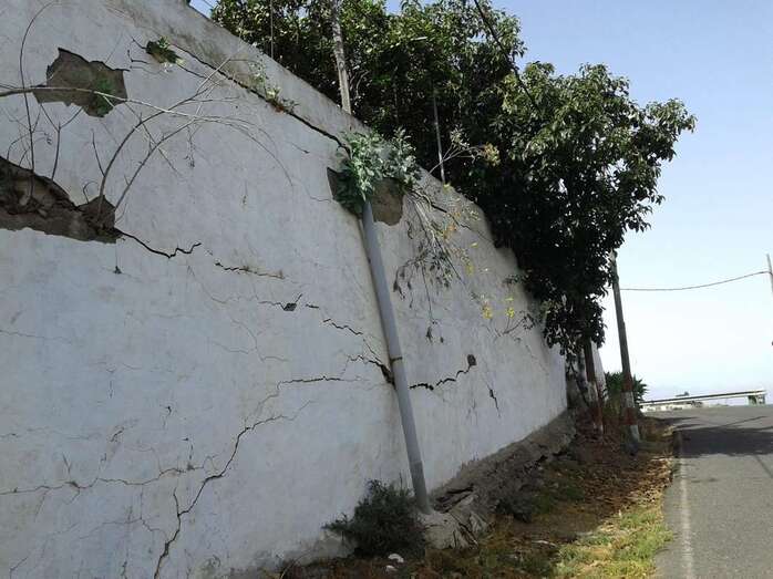 Vecinos de la calle La Pepina advierten del riesgo que presenta un muro agrietado junto a la carretera GC-803. Aseguran que han tocado las puertas del Cabildo y del Ayuntamiento, pero que ni una ni otra administración toma cartas en el asunto. "Hay muros que se están cayendo. Se les pide ayuda y tampoco responden. Encima quieren hacer responsables a los propietarios si algo ocurre", dicen.