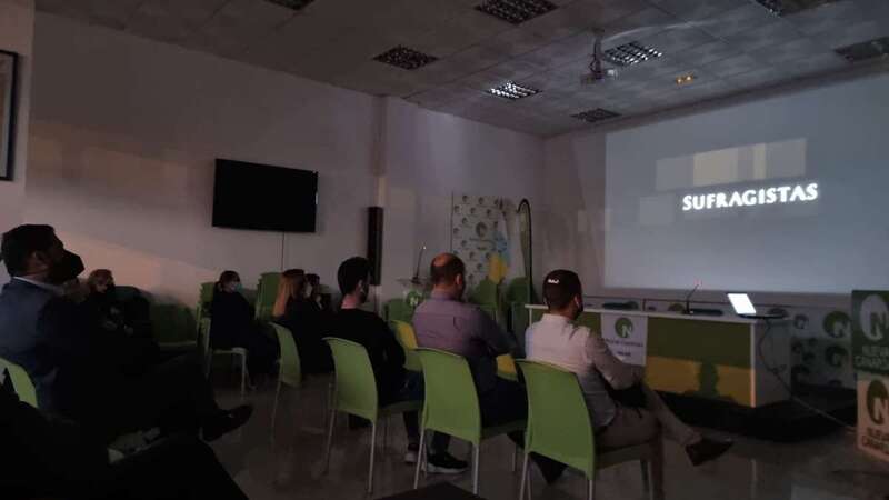 La sede política de Nueva Canarias de Telde acogió anoche un cinefórum sobre la película Sufragistas, tras su proyección, con motivo de la celebración del 8-M, Día Internacional de la Mujer.