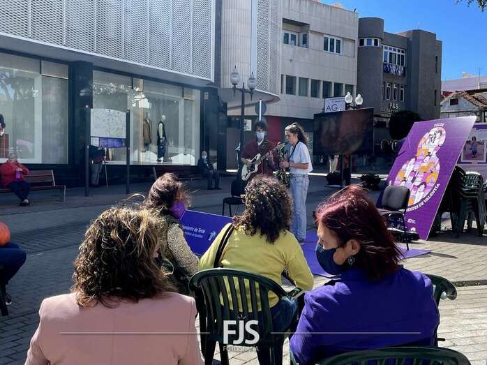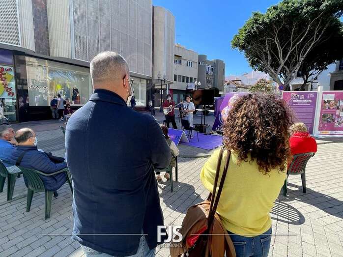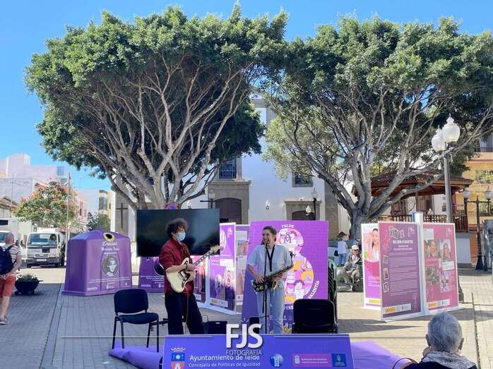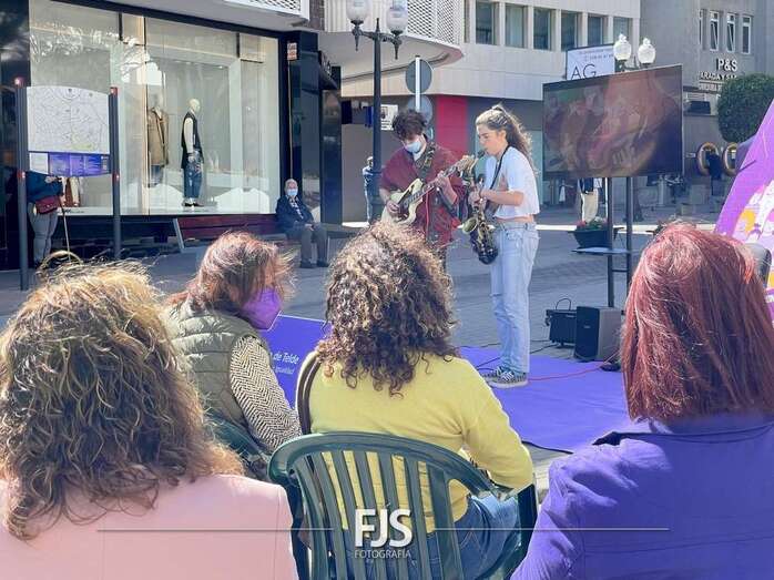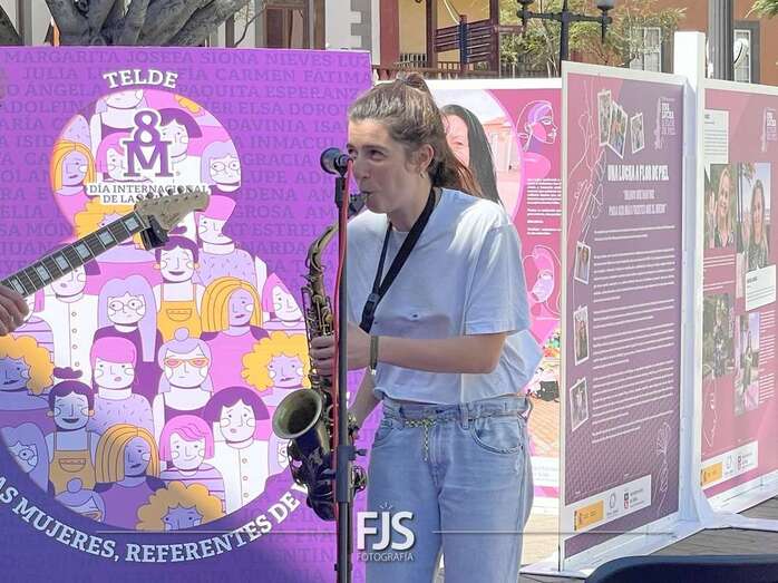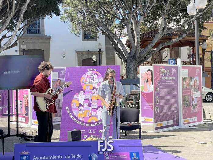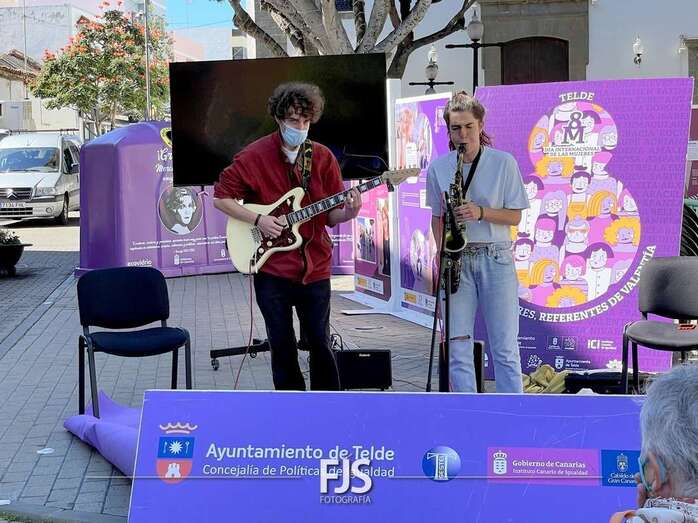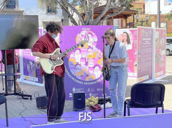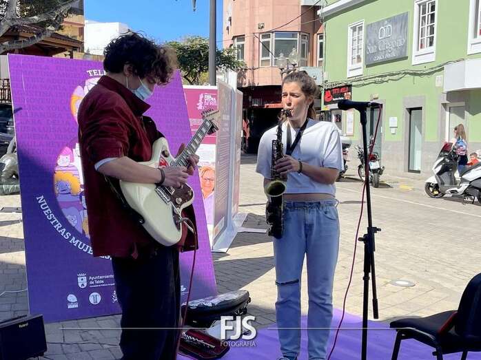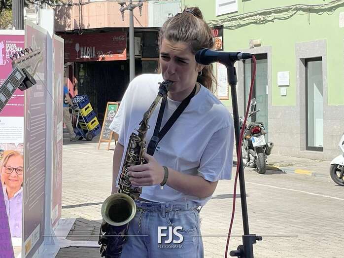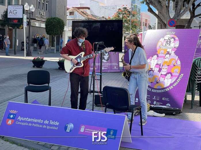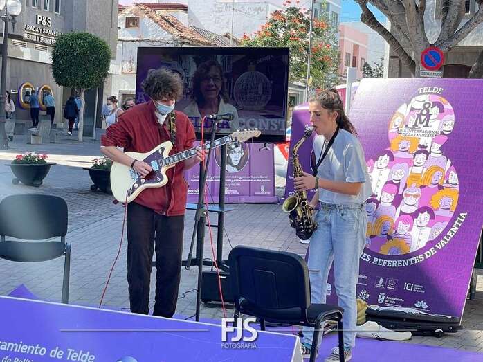 En el marco de los actos programados por el Ayuntamiento de Telde con motivo del 8-M, Día Internacional de la Mujer, el entorno de la plaza de Los Llanos acogió este viernes el concierto Acordes de valentía a cargo de la saxofonista Alba Gil Aceytuno y el guitarrista Dani Font.
