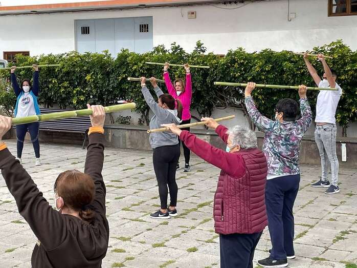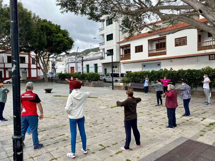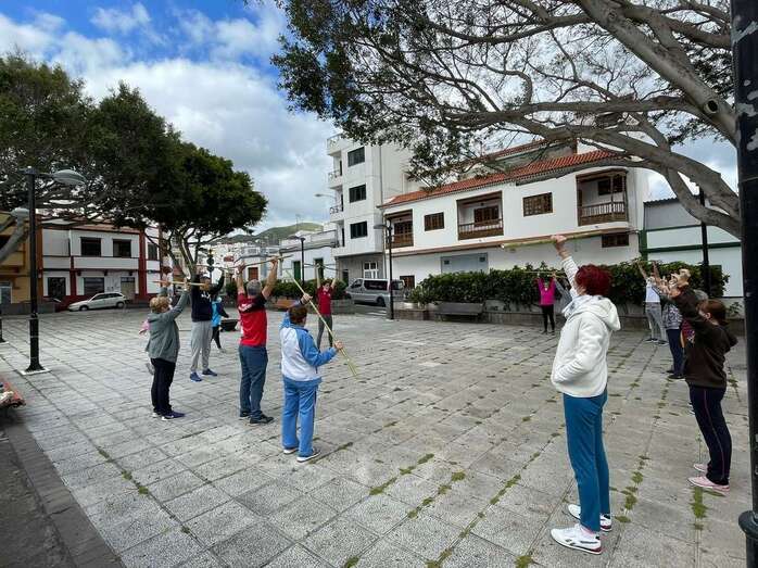 El consultorio médico de Lomo Magullo organizó este miércoles un encuentro para celebrar el Día Mundial de la actividad física. Vecinos de este barrio teldense se juntaron en la plaza de Las Nieves para disfrutar de una mañana practicando actividad física, una iniciativa promovida desde la Sociedad Canaria de Medicina de Familia y Comunitaria.
