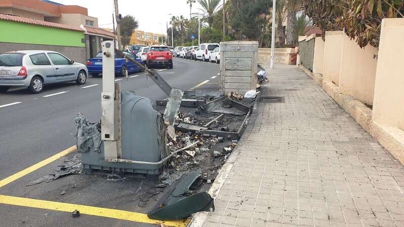 Nuevo episodio de quema de contenedores en las vías públicas de Telde. Ocurrió esta madrugada, minutos antes de las 2.00 horas, en la calle de Mister Blisse del sector residencial de La Estrella, en La Garita, donde ardieron cuatro recipientes y un quinto sufrió desperfectos, y además el fuego provocó daños a un vehículo. Antes había sido incendiado un recipiente en el entorno del Parque Franchy Roca.