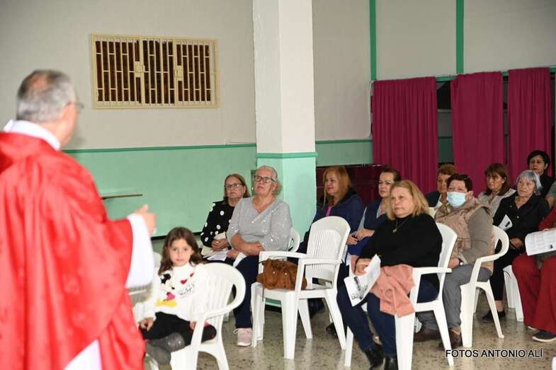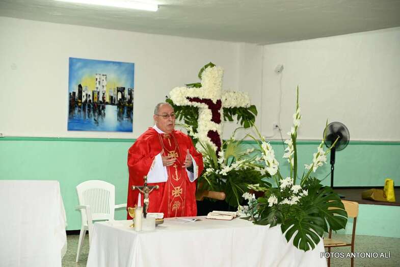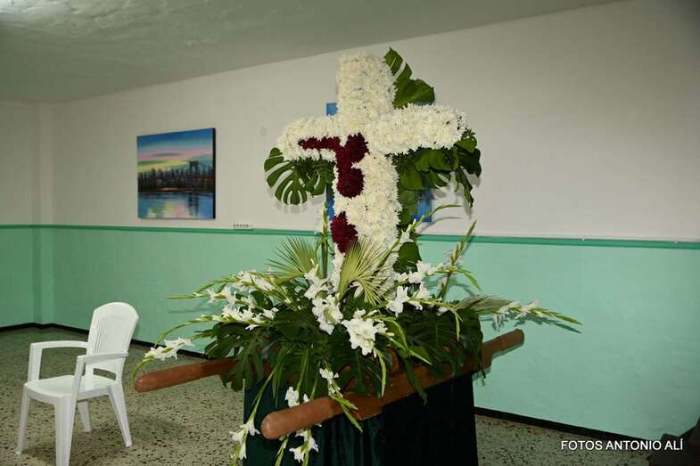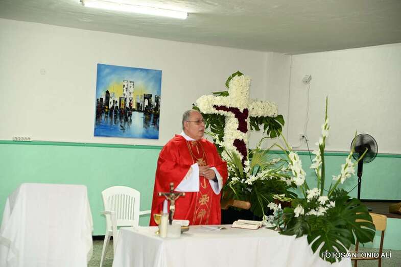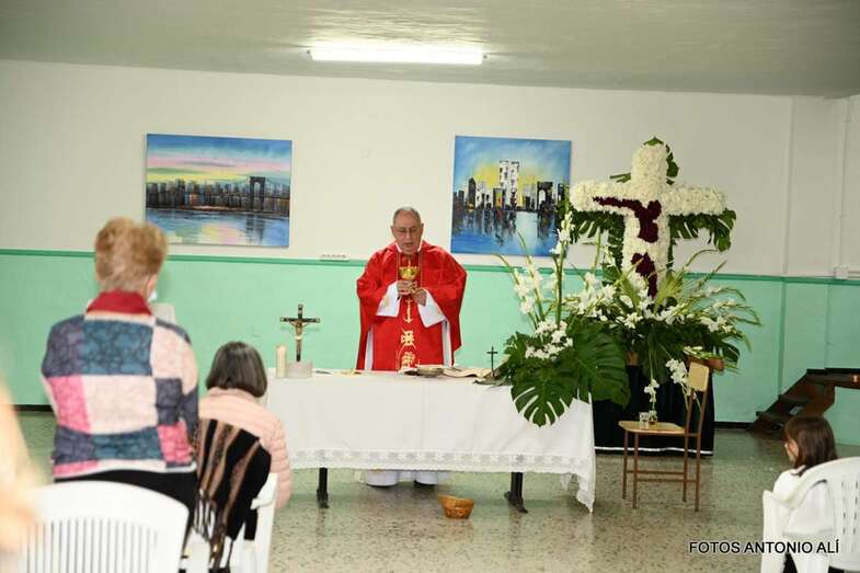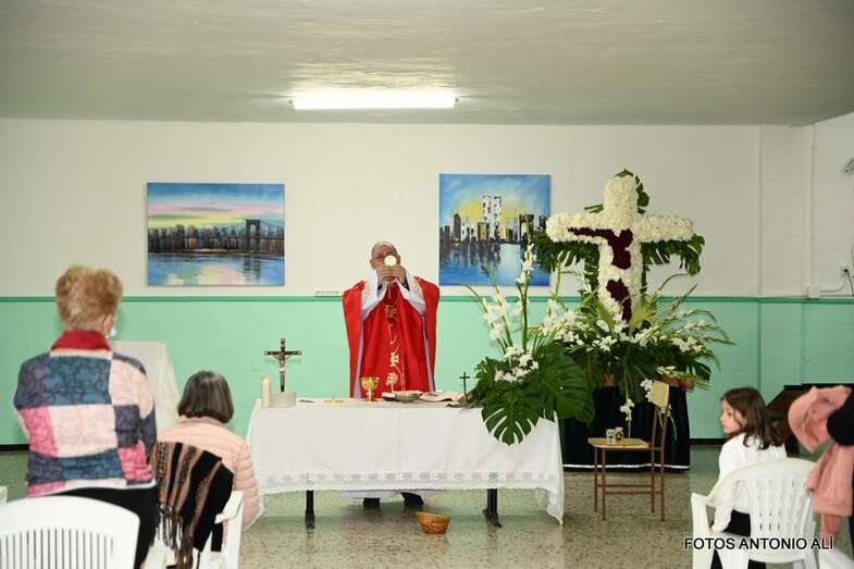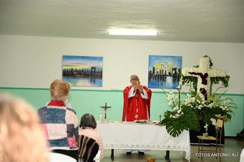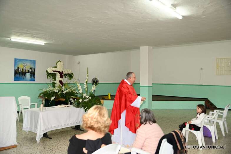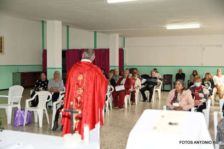 El barrio teldense de Montaña Las Palmas celebró este martes el Día de la Santa Cruz con una misa que estuve presidida por una cruz enrramada floralmente para la ocasión.