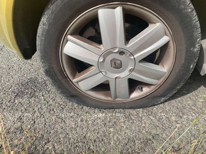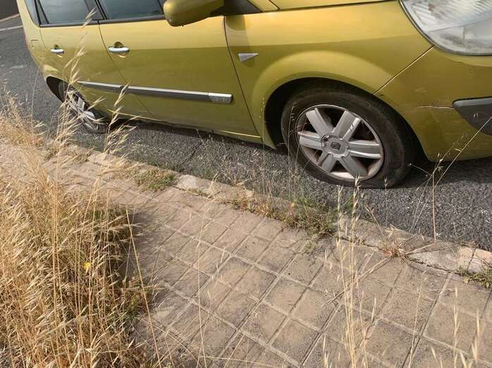 Imagen del vehículo, con dos de las cuatro ruedas pinchadas / TA