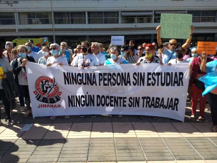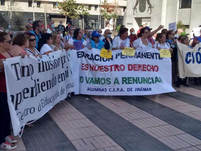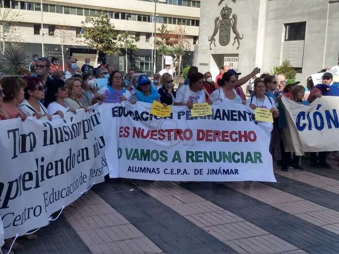 La Red de Solidaridad Popular de Jinámar (Telde) apoyó este viernes las reivindicaciones del alumnado y profesionales de los CEPAs con presencia de sus miembros en la protesta que tuvo lugar esta tarde delante del Gobierno de Canarias, en la capital grancanaria “en defensa del derecho a la Educación de Adultos, durante toda la vida”.