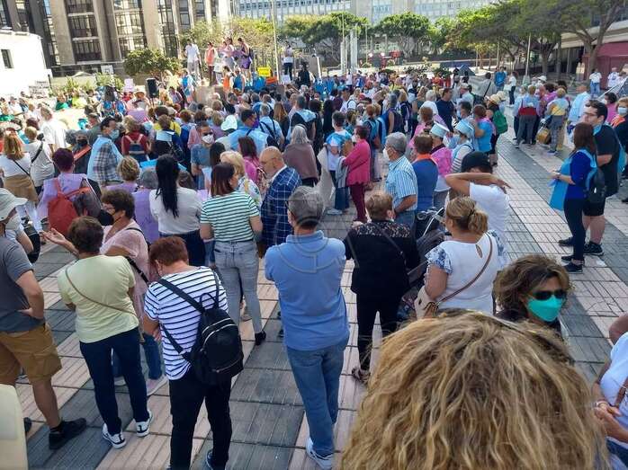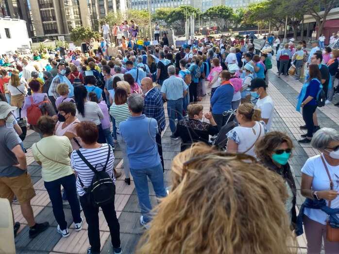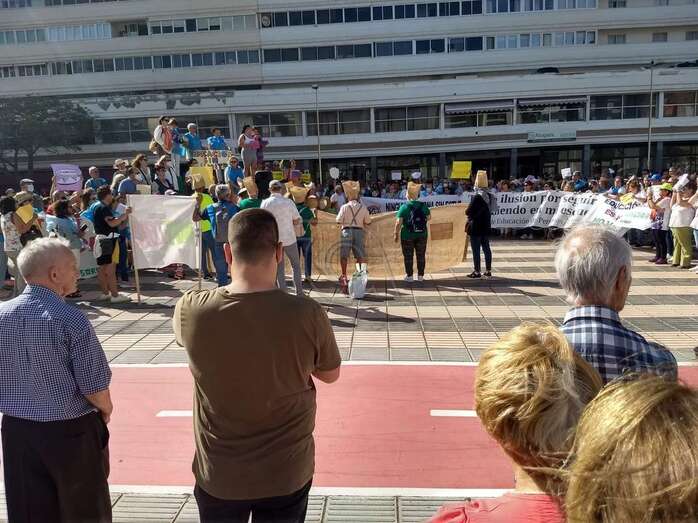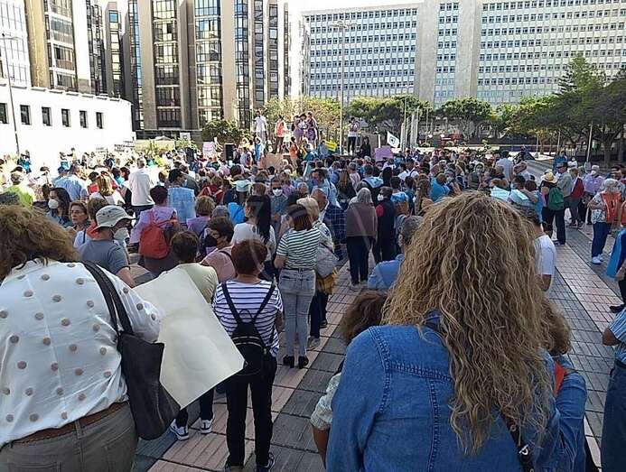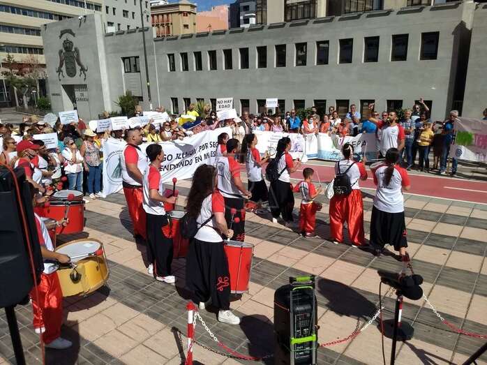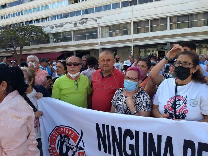 Miembros de la RSP de Jinámar en la protesta de esta tarde en la capital grancanaria/TA.