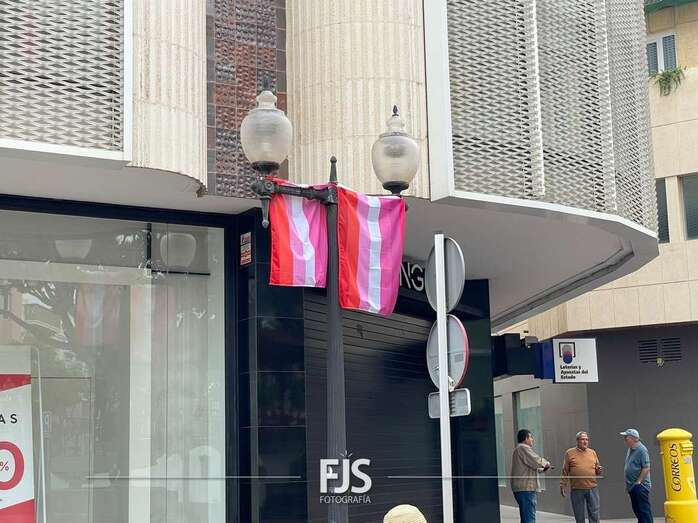 Imagen de las banderas del movimiento LGTBIQ+ que cuelgan de las luminarias de Los Llanos/Francisco Javier Santana. Imagen de las banderas del movimiento LGTBIQ+ que cuelgan de las luminarias de Los Llanos/Francisco Javier Santana.