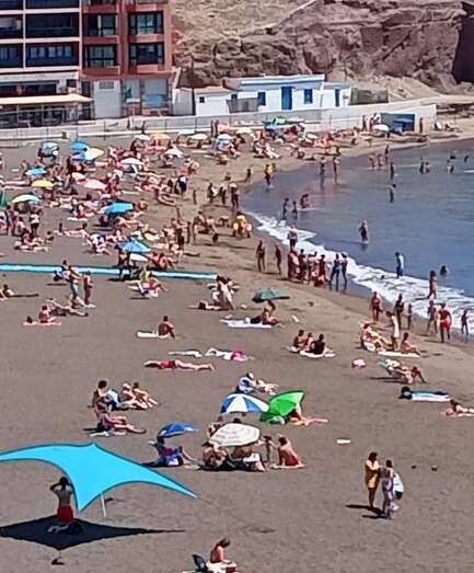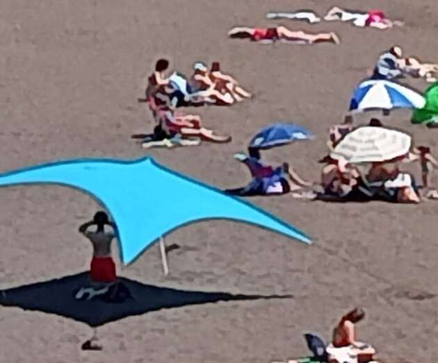 A los usuarios de la playa de Melenara les llamó la atención en esta jornada una “macro sombrilla” de color celeste, de forma singular, montada en el extremo sur de la cala. “Si cada uno nos traemos una así, no hay playa para todos”, comentó jocosamente un bañista. La curiosidad que ha despertado esta fotonoticia la ha convertido en tendencia en las principales redes sociales.